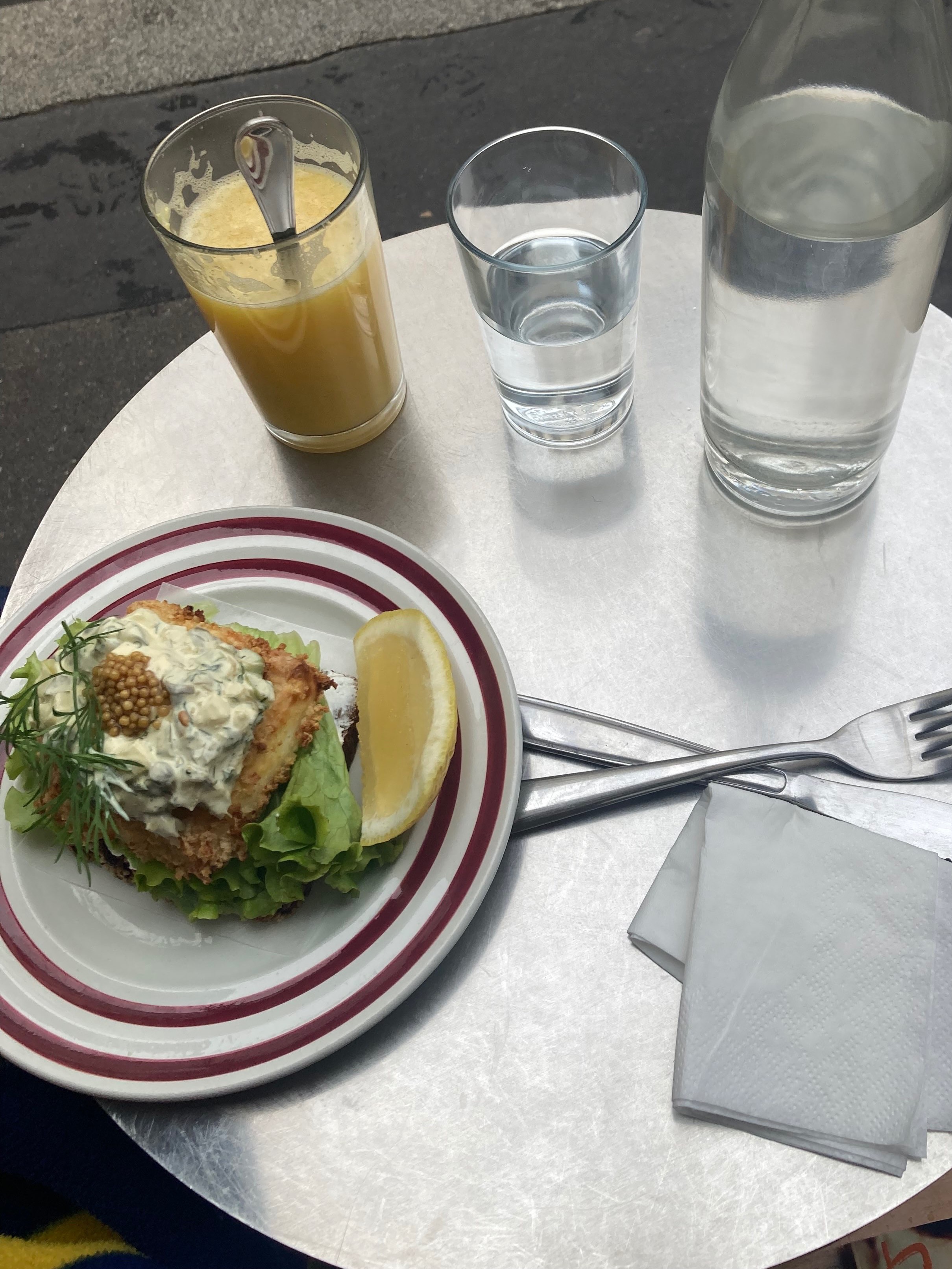 We go to one of those Parisian cocktail bars where the door isn't really a door, and you have to crawl through somewhere halfway to get inside. As we sit down and the bartender explains how the cocktail menu works, I take off my sweater. I didn't know he would keep talking, and so I ruin my grand reveal myself. I know the man will try to contain himself in front of the waiter. A missed opportunity. My hair, trousers, shoes and sweater are black, but as I peel off the top layer, a purple top is showing. It’s a single piece of fabric that comes together in one place, just below my breasts, with a silver jewel. Above and below the jewel, the fabric falls open. It shows the lines of where my breasts begin and where my stomach ends. The bartender and the Frenchman both let their gaze fall on the bare skin between above and below the silver jewel, and for a moment the air around us is silent and crisp. The bartender leaves and in the man’s eyes I see a sparkle. He showers me with compliments all evening, and not one of them feels hollow. He keeps repeating: "You are so alive and vibrant. You are bursting with energy." I giggle and let my hand rest on his arm.